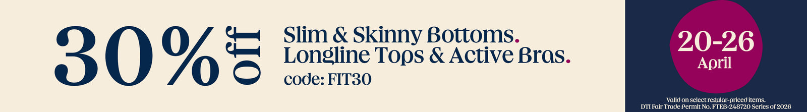 30% off on Slim and Skinny Bottoms & Longline Tops and Active Bras
