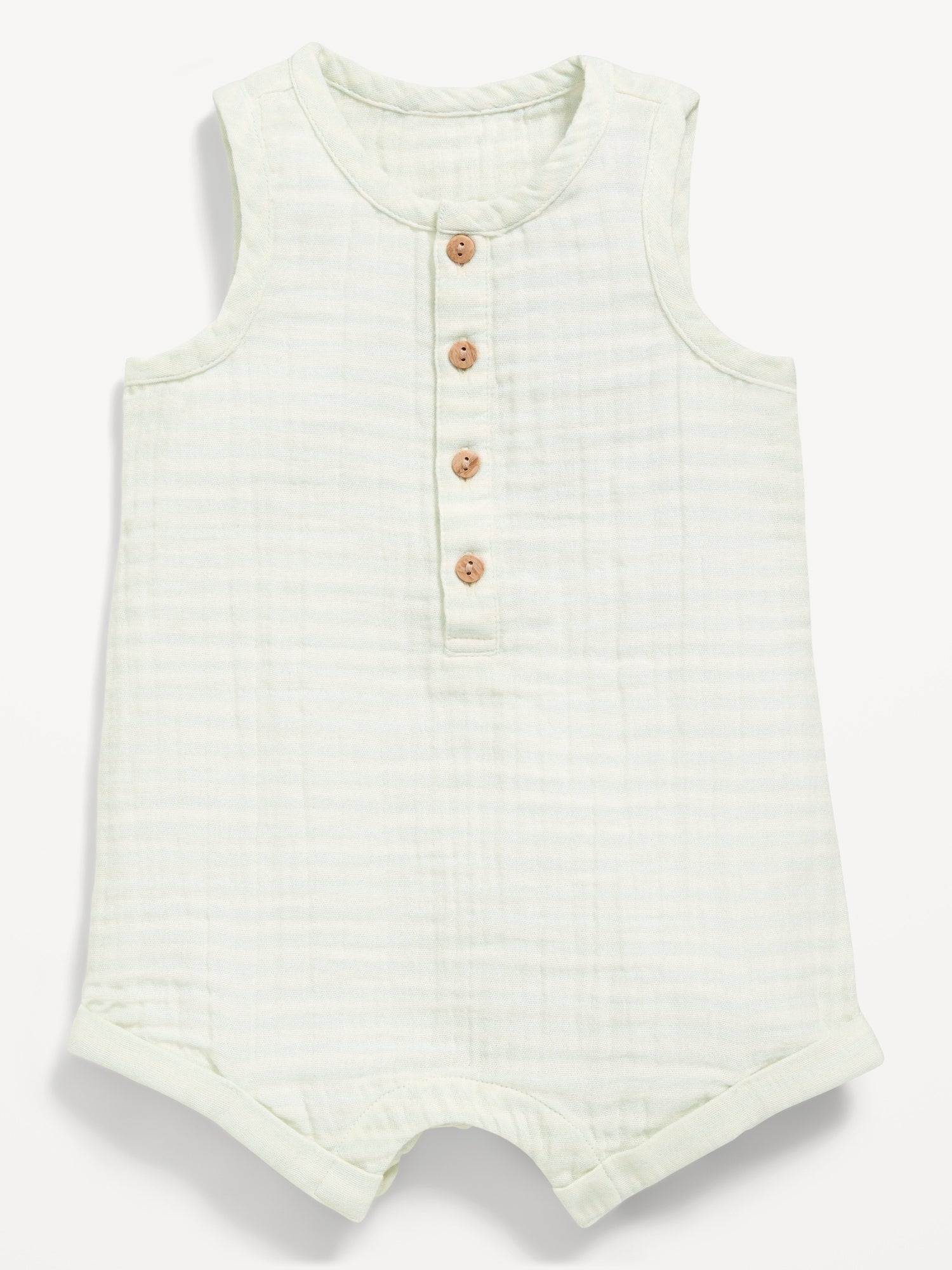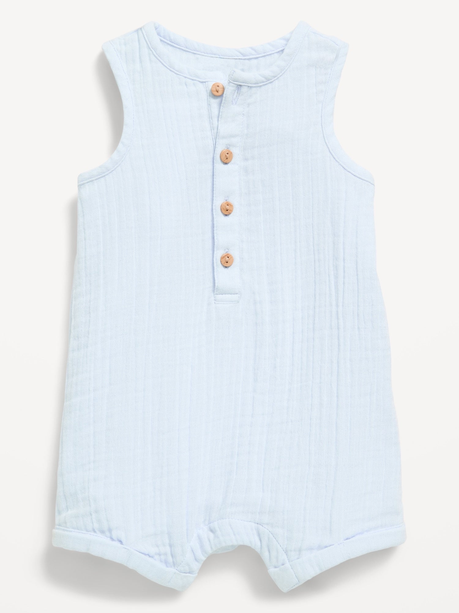 Sleeveless Double-Weave Henley One-Piece Romper for Baby