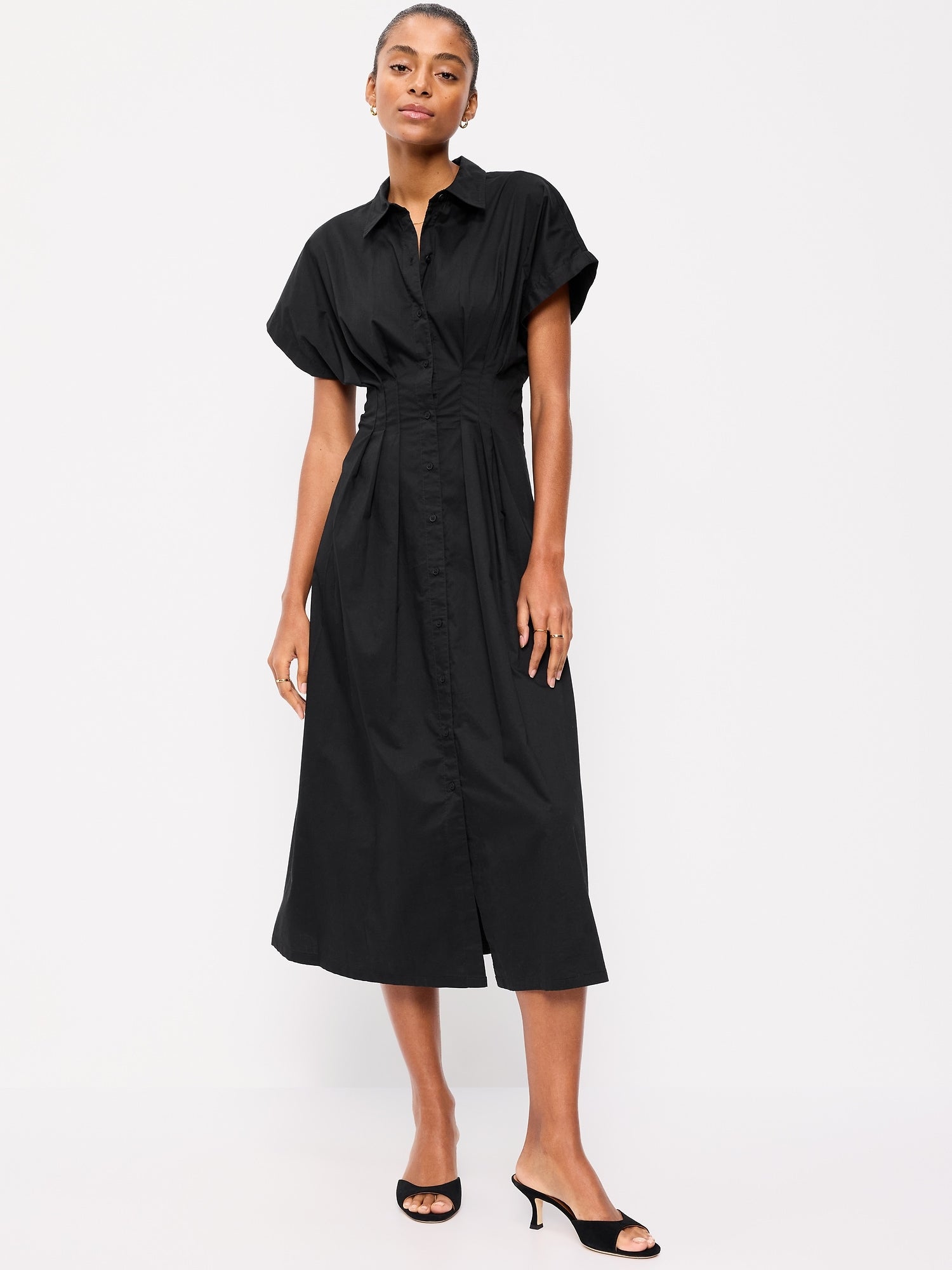 Smocked-Waist Midi Shirt Dress