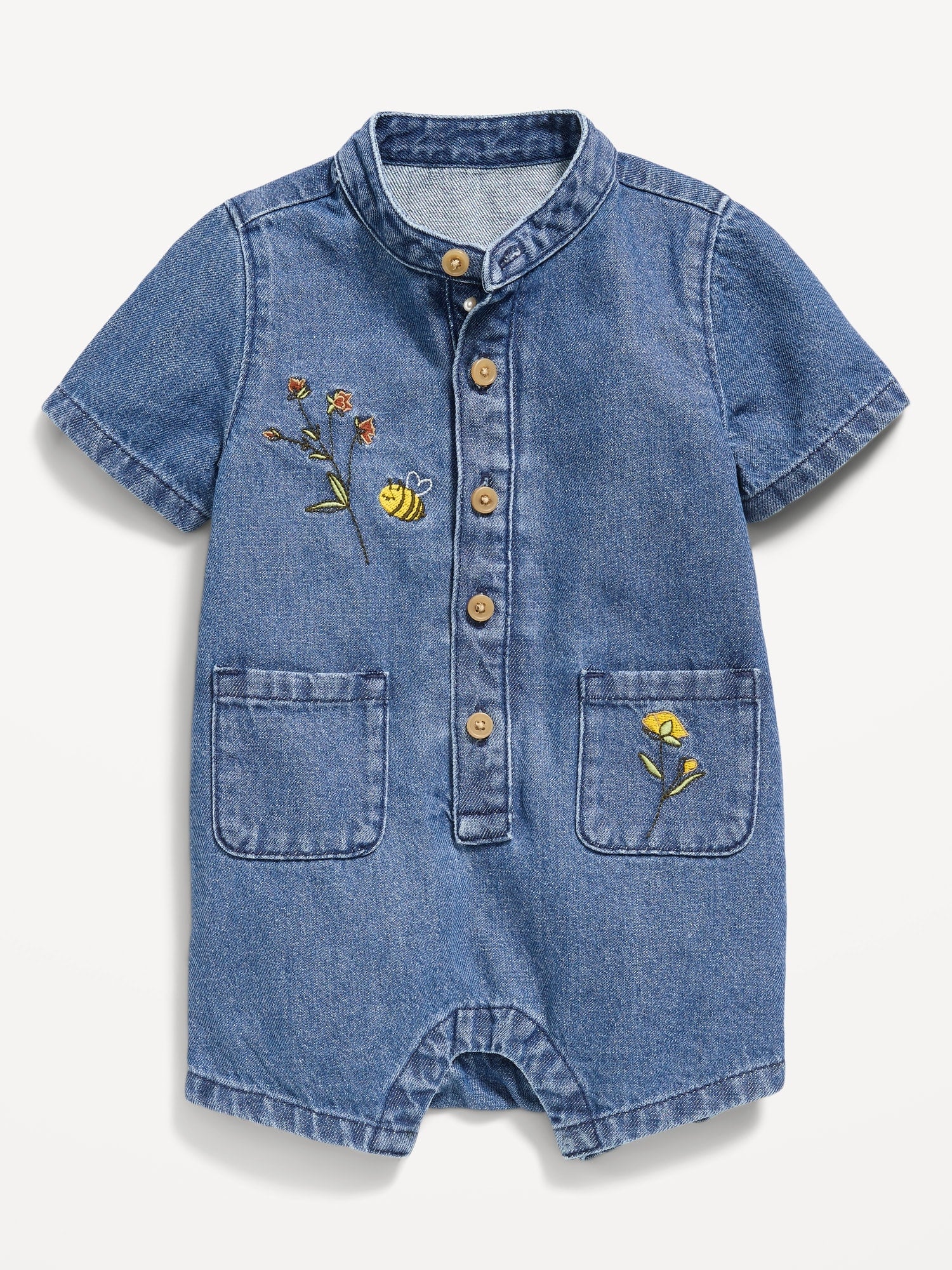 Embroidered Chambray One-Piece Romper for Baby