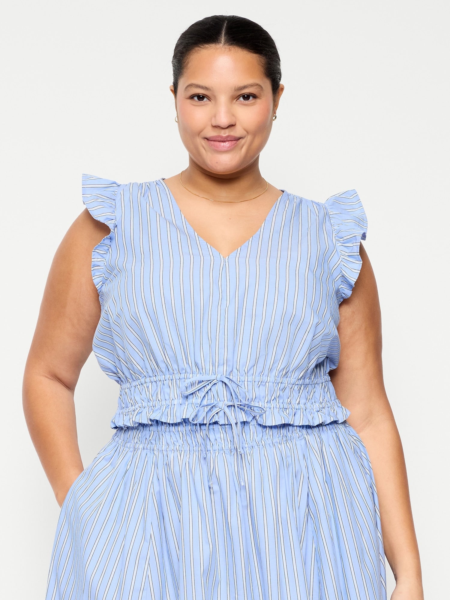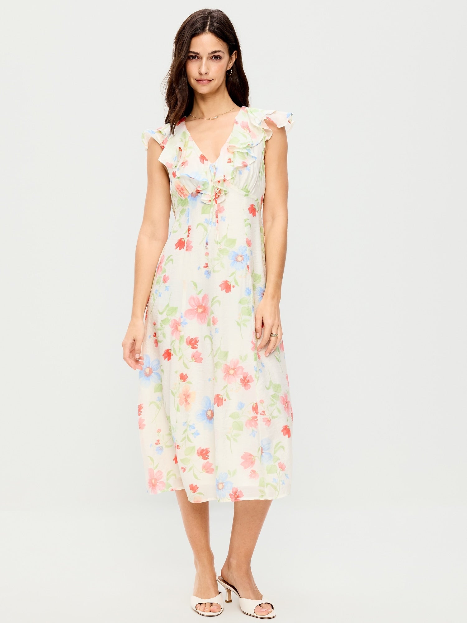 Ruffle-Sleeve Fit & Flare Midi Dress