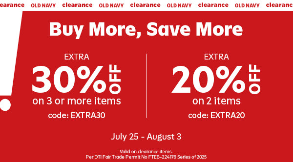 Thanks for your feedback! If you need immediate assistance, please contact (02) 8830 5000 or email custserv@oldnavy.com.ph.