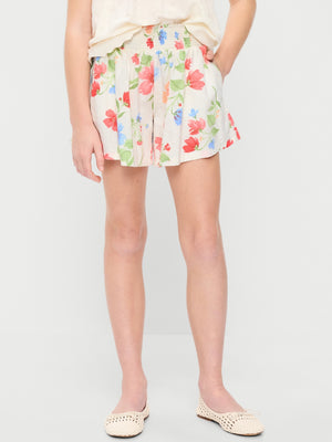 Printed Smocked-Waist Linen-Blend Shorts for Girls