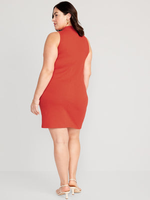 Sleeveless Mock-Neck Rib-Knit Mini Shift Dress for Women