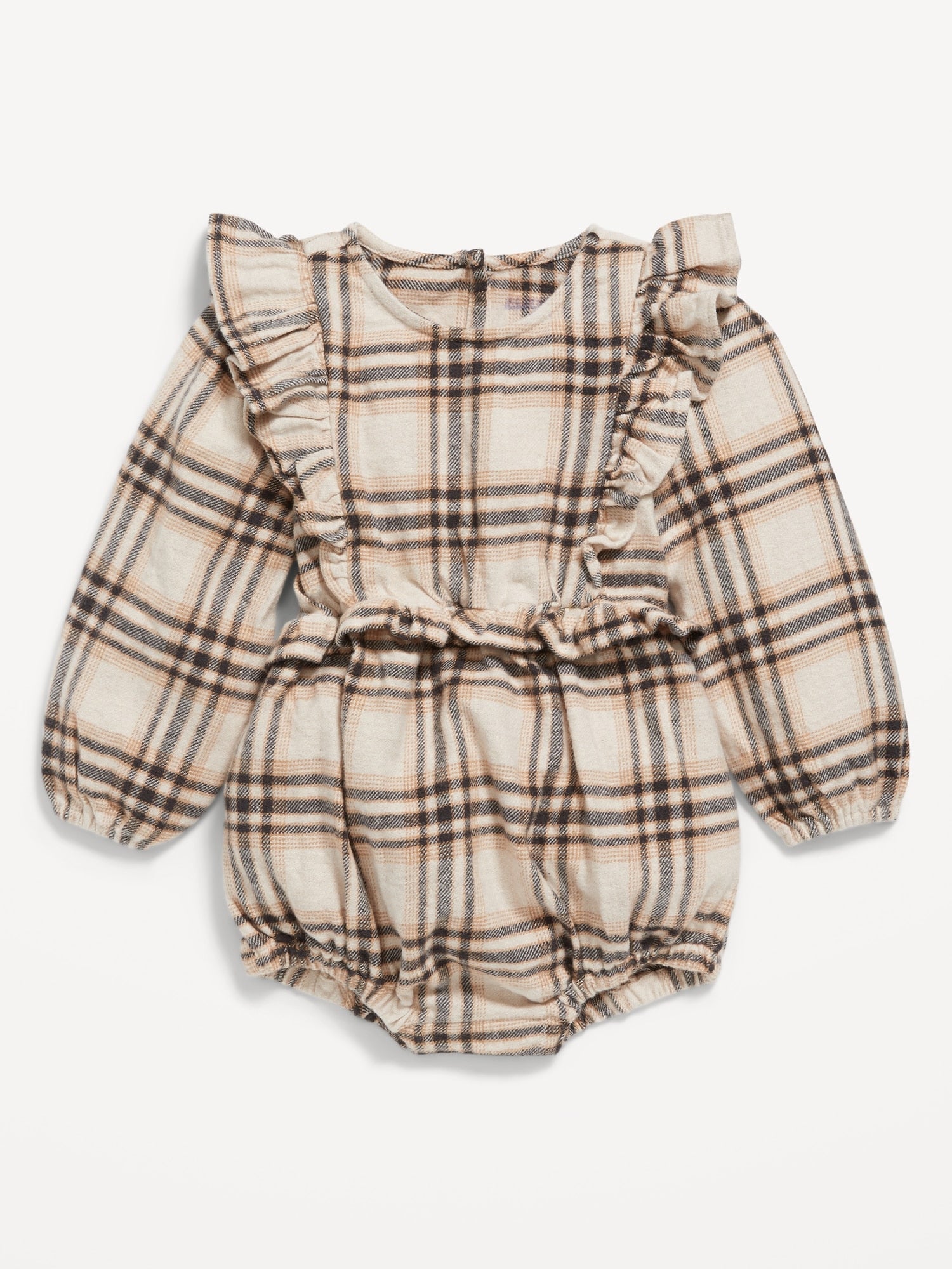 Long-Sleeve Ruffle-Trim Plaid One-Piece Romper For Baby