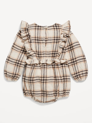 • Baby one-piece has relaxed fit through body.