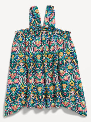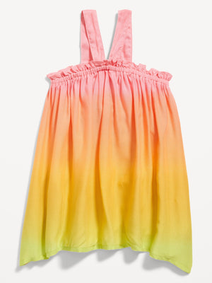 • Elasticized, ruffled neckline, with wide halter-style straps.