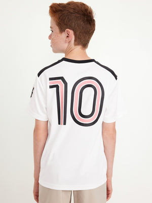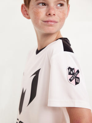 Have your child stand straight with their back against the wall - no shoes on and both feet together. Lightly mark the wall at top of your child’s head. Measure from the floor to the mark.