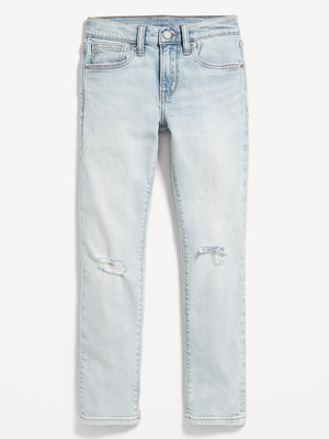 Have your child stand straight with their back against the wall - no shoes on and both feet together. Lightly mark the wall at top of your child’s head. Measure from the floor to the mark.