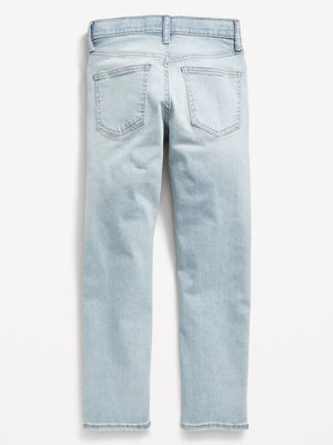 • Durable, dark-wash denim, with rips and fading for a lived-in look.