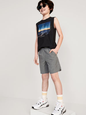• Boys run shorts are relaxed through hip and thigh.