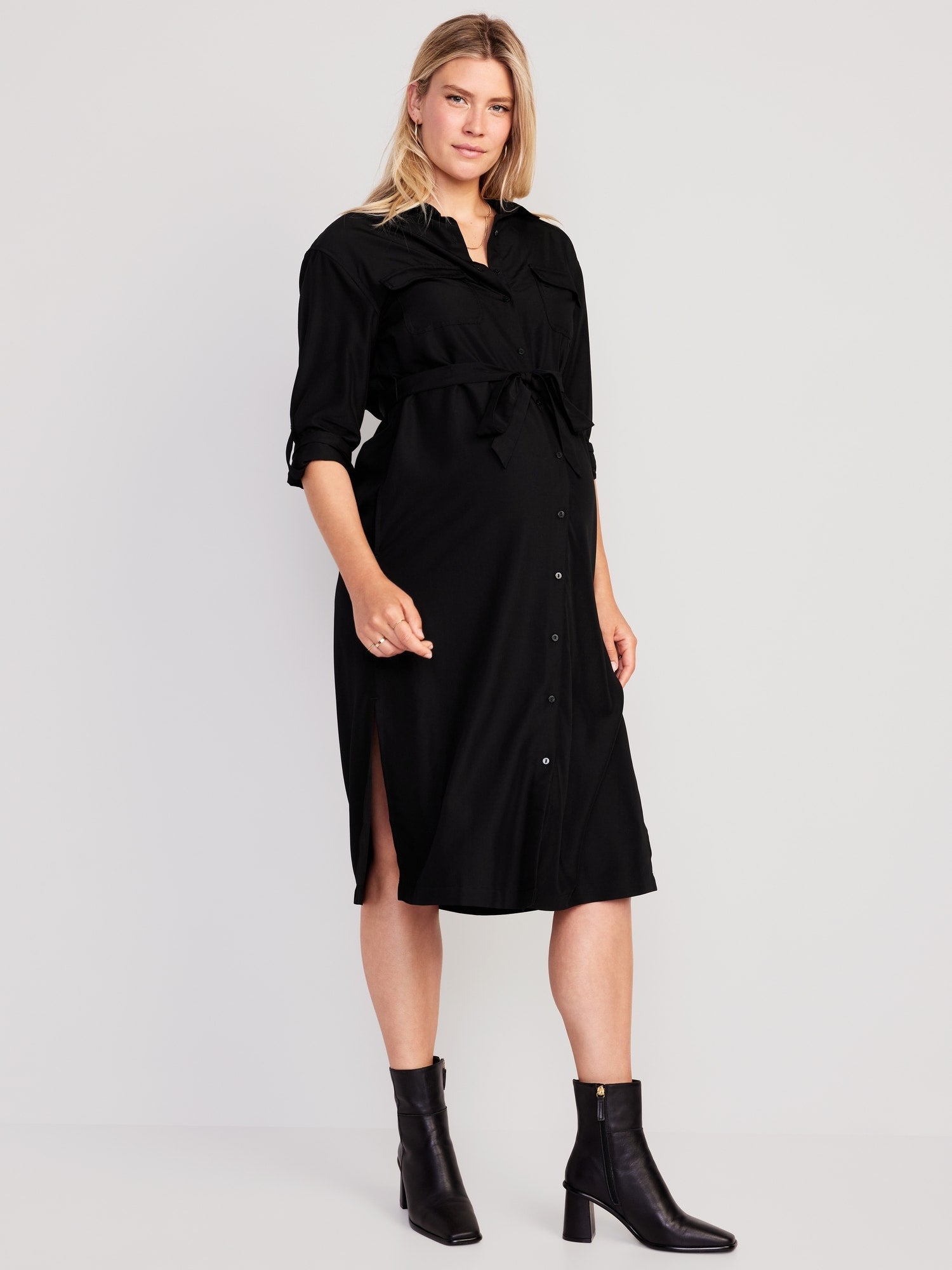 Maternity Long-Sleeve Luxe Peplum-Hem Henley Top