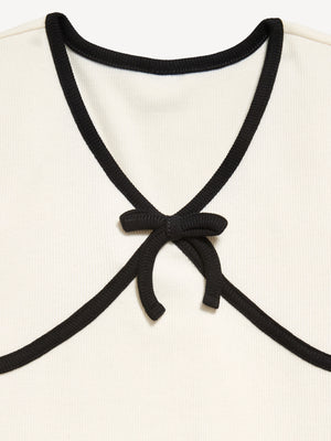 • decorative bow at chest