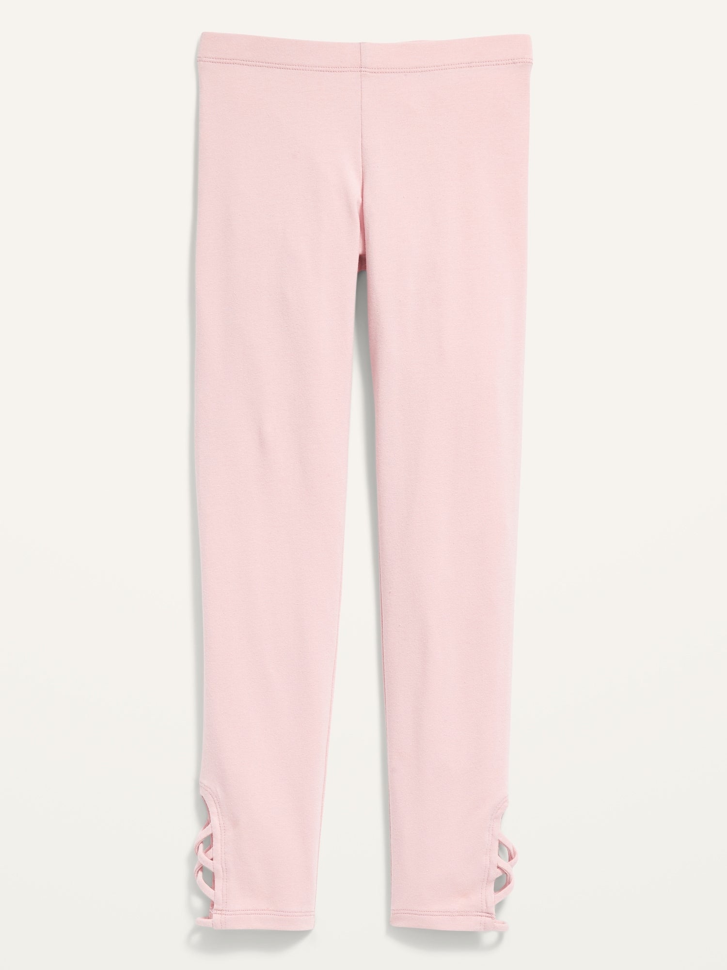 Built-In Tough Full-Length Lattice-Hem Leggings for Girls