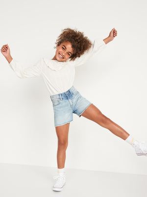 High-Waisted Frayed-Hem Jean Shorts for Girls
