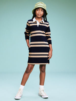 94 Long-Sleeve Rugby Polo Dress for Girls