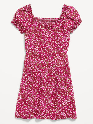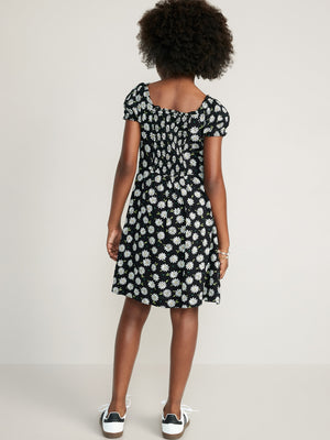 Printed Puff-Sleeve Fit & Flare Dress for Girls