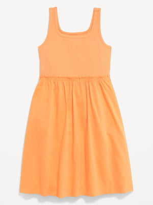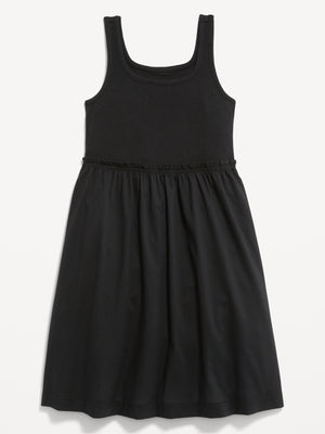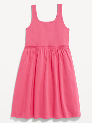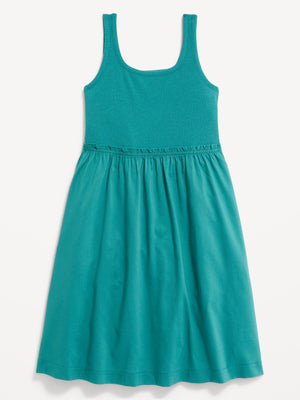 • Rib-knit bodice, with seamed, ruffled waist and full skirt.