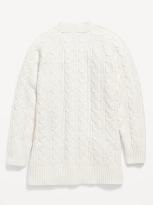 • Girls cardigan sweater hits below hip.