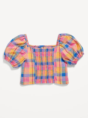 Short Puff-Sleeve Linen-Blend Top for Girls