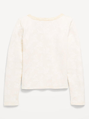 Fitted Long-Sleeve Lace-Trim Top for Girls