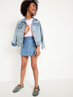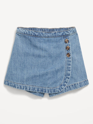 High-Waisted Wrap-Front Jean Skort for Girls