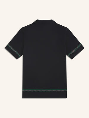 Place your hand on your hip. Start the tape at the center back of your neck, to your shoulder, around your elbow, and to your wrist.