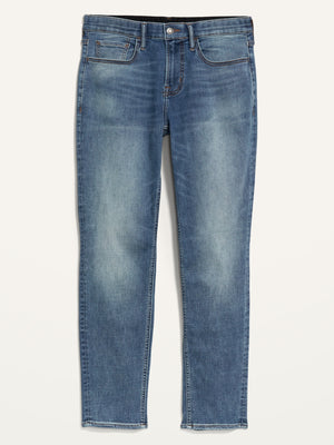 • Dark-wash denim with whiskering & fading for a vintage look.