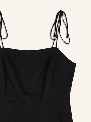 • Tie-shoulder spaghetti straps.