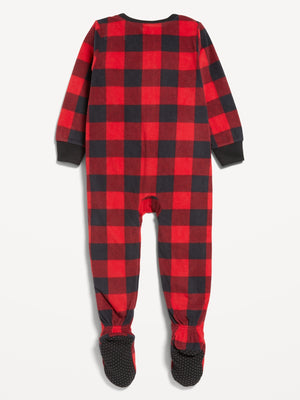 • Unisex pajama one-piece has relaxed fit through body.