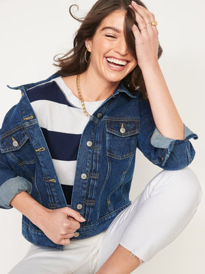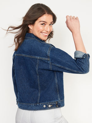 • Women's classic jean jacket hits below waist.