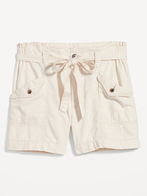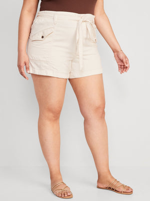Extra High-Waisted Tie-Front Cargo Workwear Shorts for Women -- 4-inch inseam