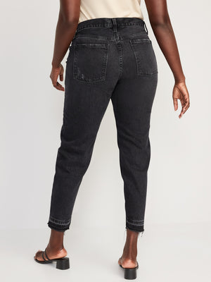 High-Waisted Button-Fly Slouchy Taper Black-Wash Cut-Off Non-Stretch Jeans for Women