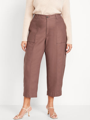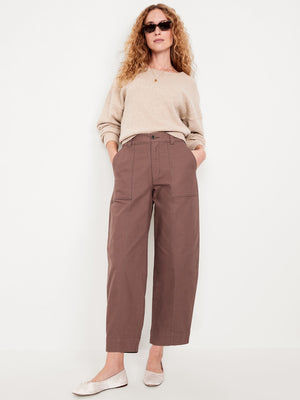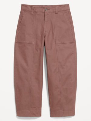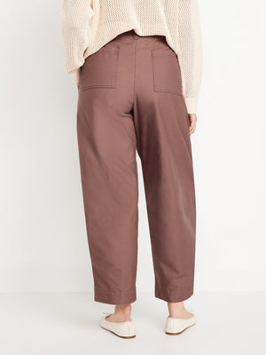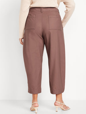High-Waisted Canvas Barrel-Leg Pants