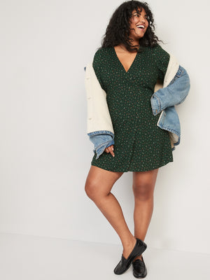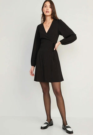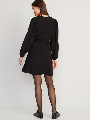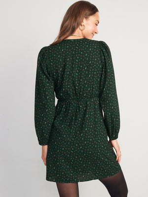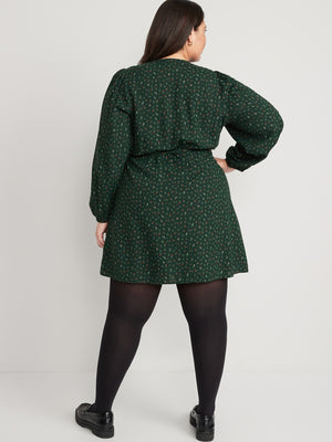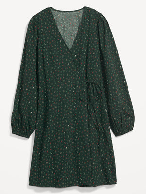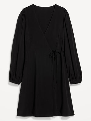 Puff-Sleeve Mini Wrap Dress for Women