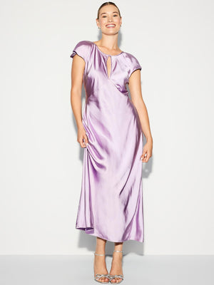 • body-skimming satin is cut on the bias for a perfect fit