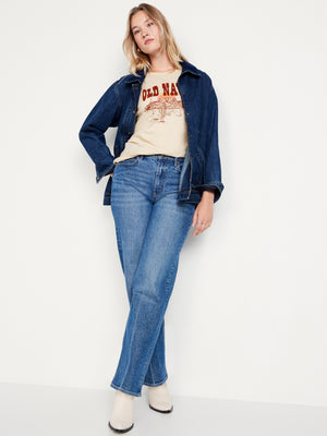 • Women's graphic t-shirt hits below waist.