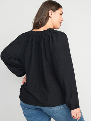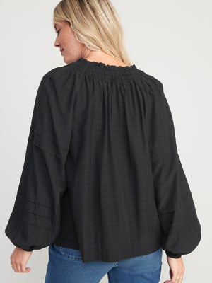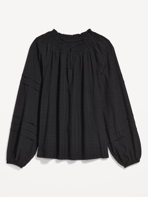 • Long, pintucked raglan sleeves, with elasticized cuffs.