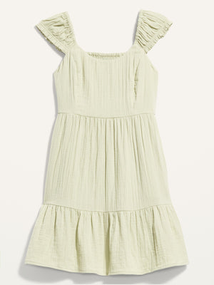 • Fitted at top, with a defined waist and flared mini-length skirt.