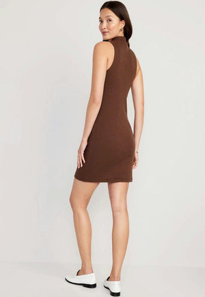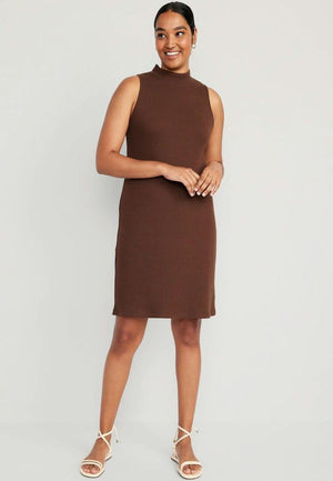 Sleeveless Mock-Neck Rib-Knit Mini Shift Dress for Women