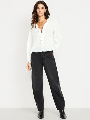 • baggy barrel shape through hip and thigh