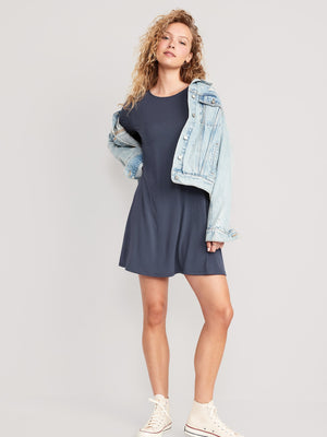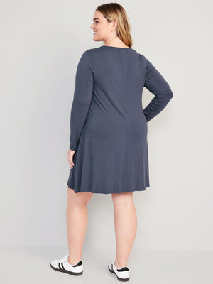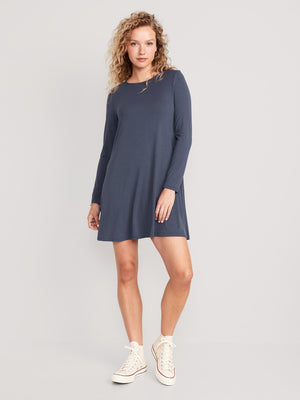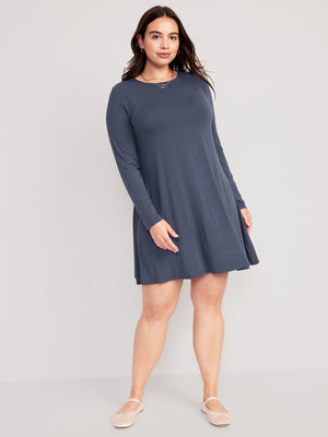 Long-Sleeve Jersey-Knit Mini Swing Dress for Women