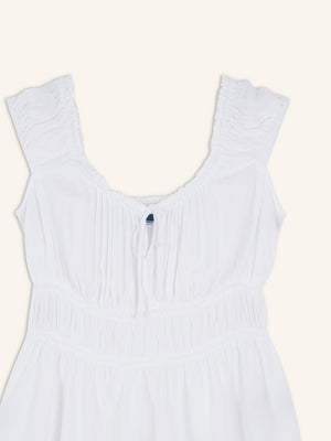 • Smocked waist, with flared, ruffled hem.