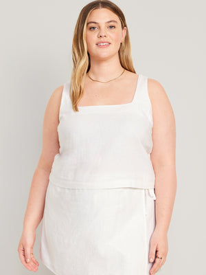 Sleeveless Linen-Blend Cropped Top