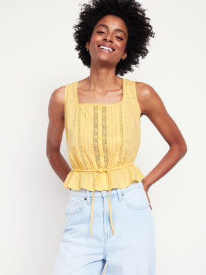 • Picot Lace-Trim Square Neck
