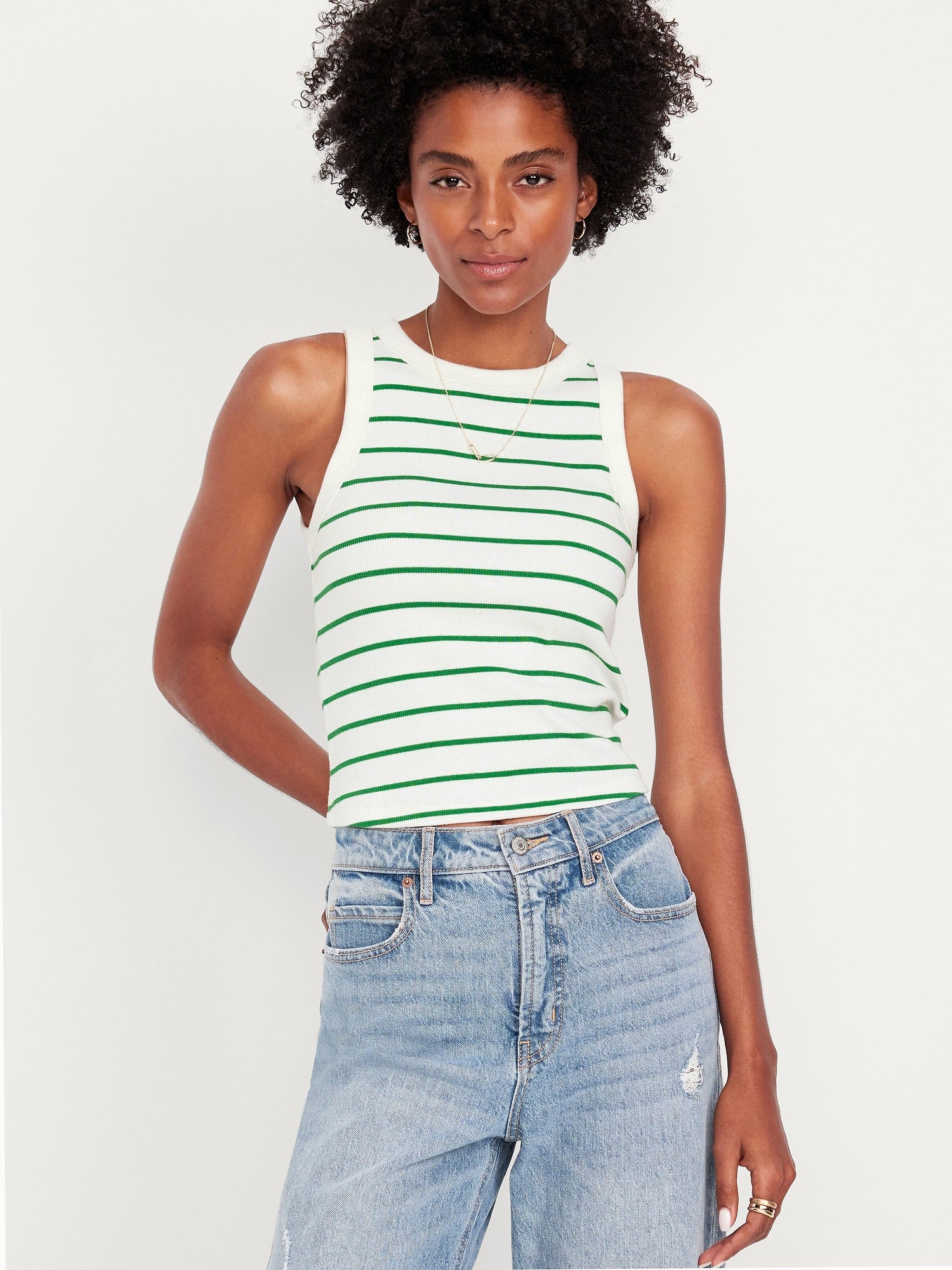 Fitted Linen-Blend Tie-Shoulder Cropped Cami Top For Women