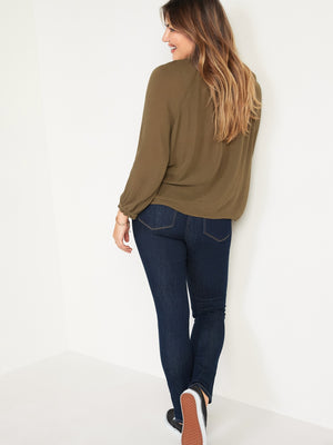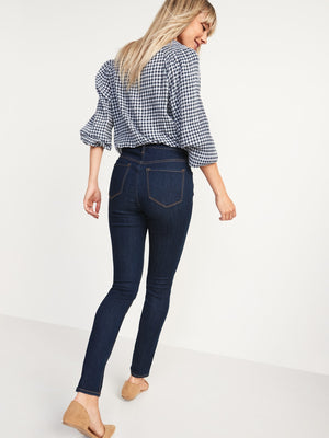 • Rope-dyed, durable dark-wash cotton-blend denim, with comfortable stretch to flatter all shapes.