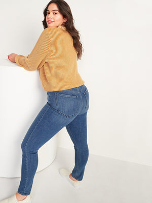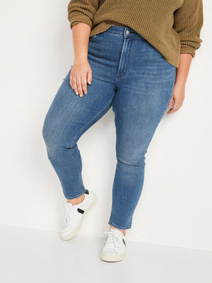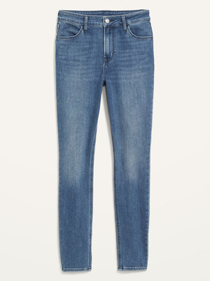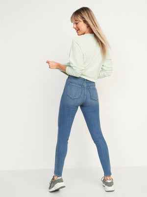 • Women's medium-wash super skinny jeans hit at ankle.