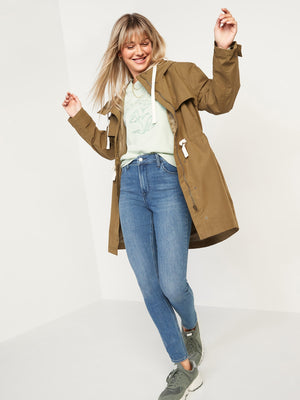 • High-rise jeans sit high on waist.