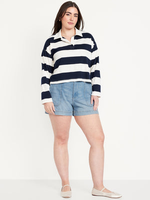 • Models are approximately 5'9" and are wearing sizes S (numeric size 4), L (numeric size 12), and XL (numeric size 18).